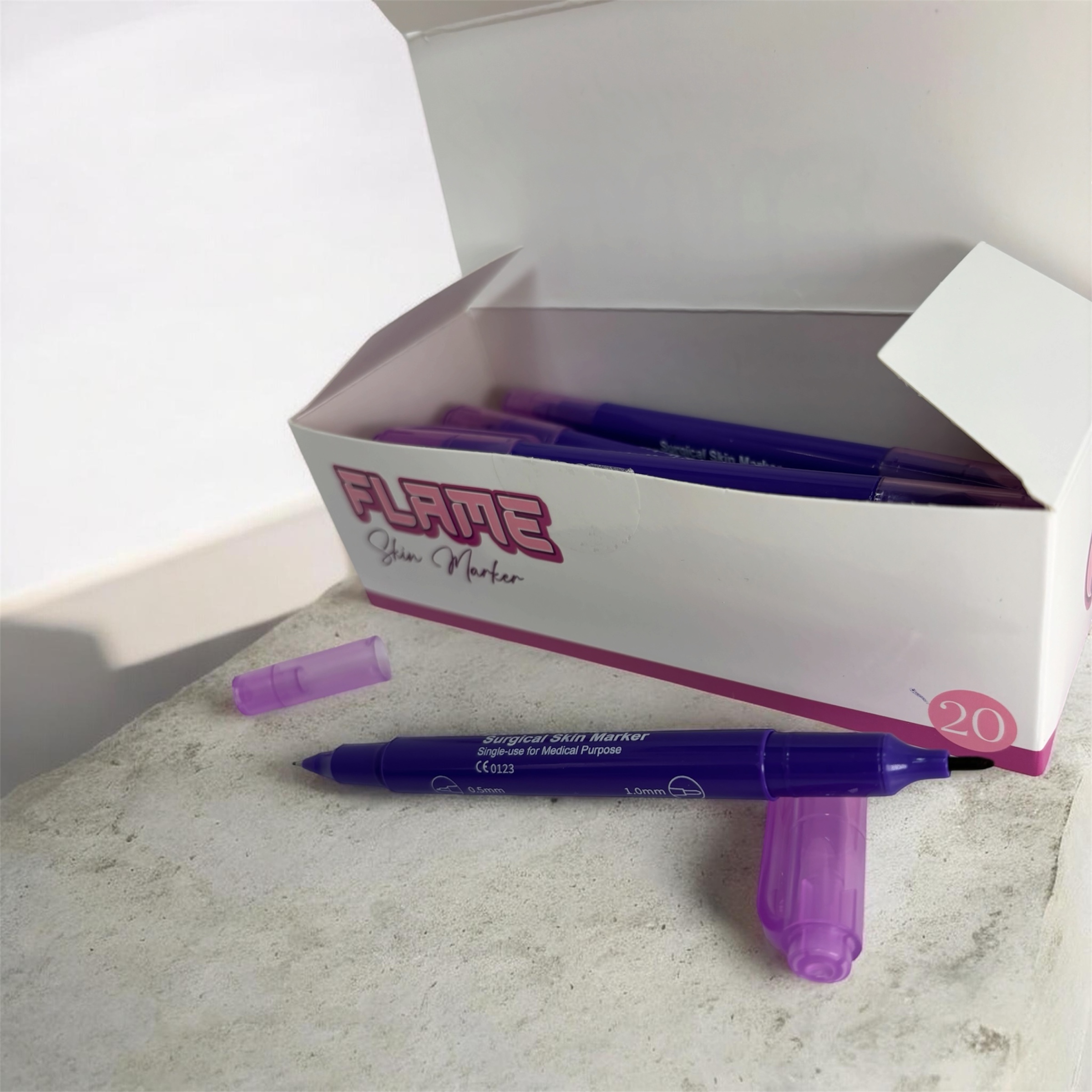 Le Flame skin marker est conçu pour les artistes tatoueurs, ce marqueur cutané double pointe vous permet de tracer avec précision directement sur la peau avant le tatouage. Grâce à ses deux embouts (fin et standard), vous pouvez adapter votre tracé selon les détails de votre design.